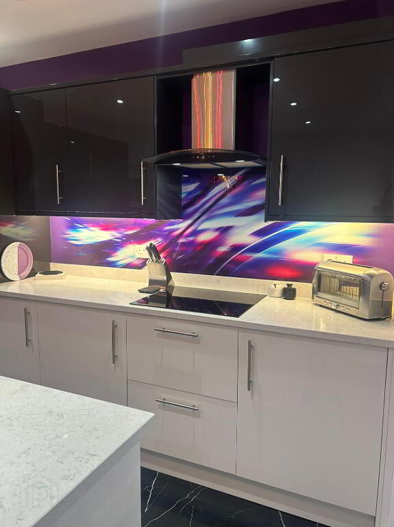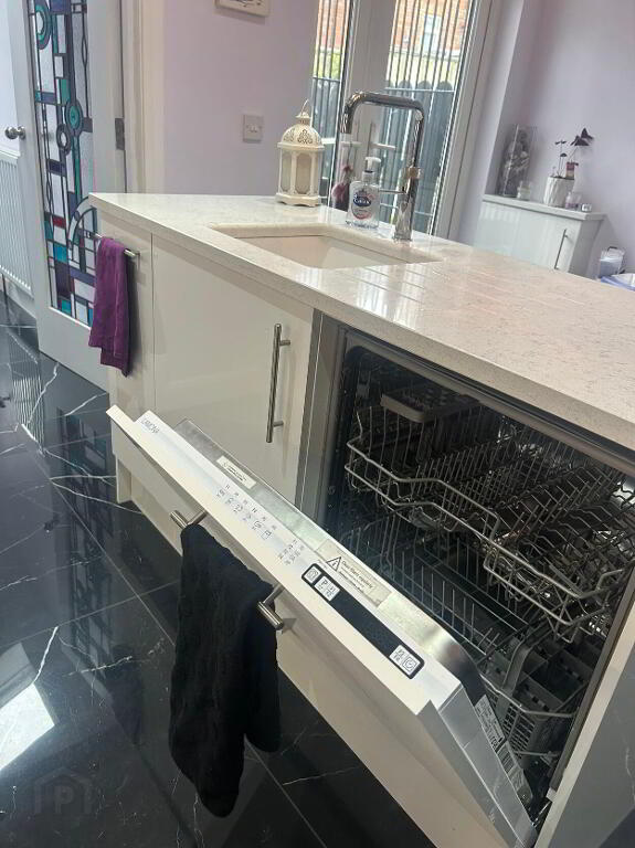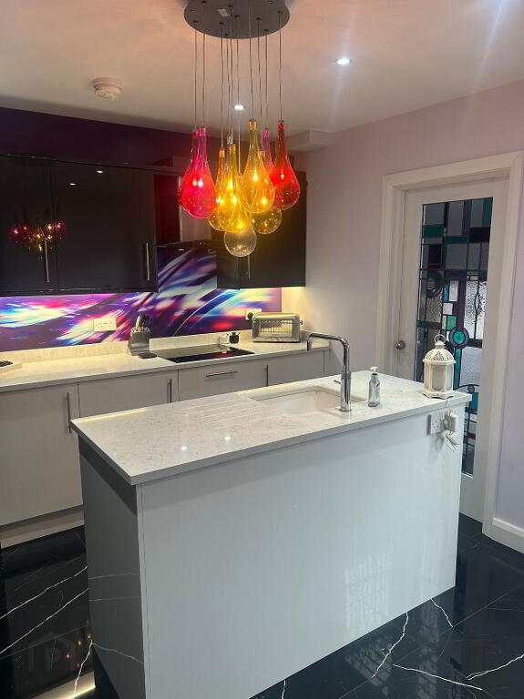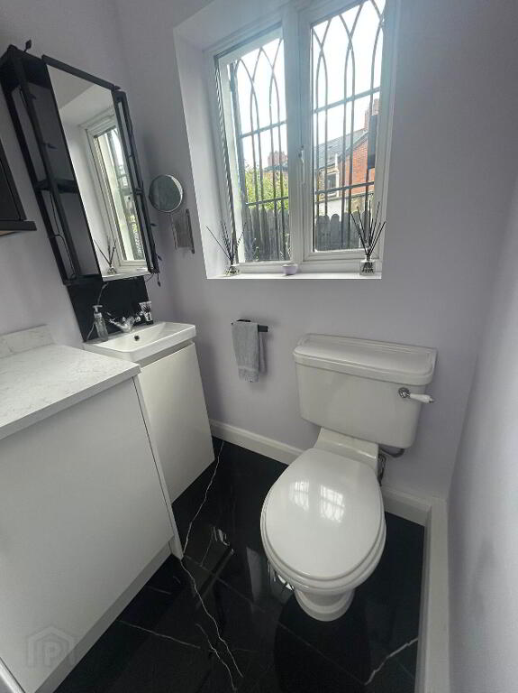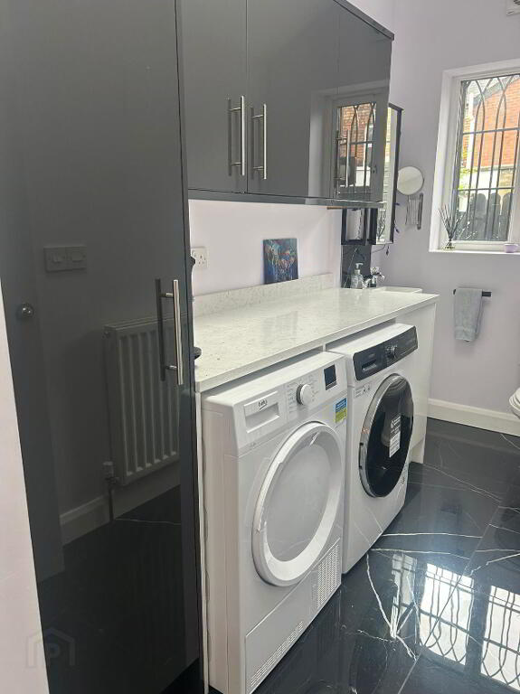 We are pleased to present this beautifully presented mid terraced house, located just on the Belmont Road, in Belfast - just a few steps from the local shops & restaurants. This well presented mid terraced property is well worth a visit. It has a double extension on the kitchen and back bedroom and a further extension to add a utility room and downstairs WC, completed only a year ago with new kitchen. The downstaris comprises of an entrance hall leading to an open plan dining, living area with double doors through to the extended kitchen area with island and space for an armchair to enjoy the afternoon sun shining through. The living room houses a working open fire for cold cosy nights. There is under stair storage off the dining room. The open aspect to the area to the staircase gives it an open airy feel. The kichen has all built in applicances, including combination microwave, oven, ceramic hob, dishwasher, farmhouse sink in the island and corner, understair walk-in larder. From the kitchen you can access the utility room with washing machine and tumble dryer and plenty of storage. There is also a sink and toilet here. The kitchen leads out into a quaint back garden with an area to keep bins and coal for the open fire. The back of the house has been decoratively reinforced for security. The second floor comprises of the main front bedroom looking out into the street with built in slide robes and the original picture rail. The large main bathroom, originally the second bedroom, has a bath, seperate shower unit, toilet and sink with a shaft added to access natural light via a velux window in the roof. The secend bedroom in the original extension of the house is a good size double room with built in large slide robes and plenty of natural light. The roofspace is accessed via built in ladder and floored for storage. This property is conveniently located and a good size for a mid terrace and close to many schools and public transport routes.